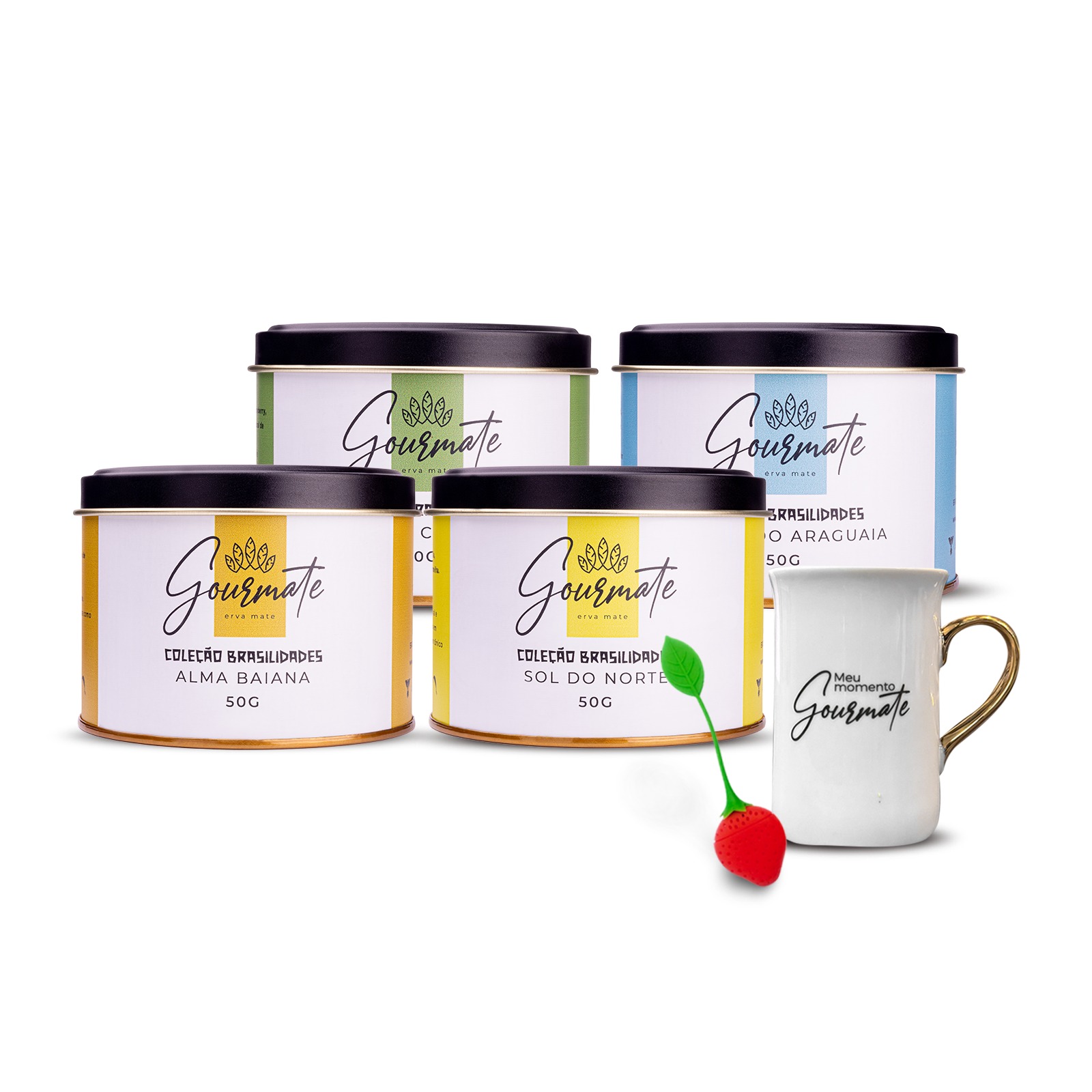 Aprecie nossos sabores em uma xícara exclusiva, feita em porcelana com alça de ouro e leve de brinde um infusor.